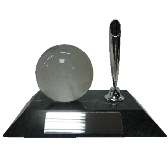 The green marble is unique color in the world. There’s transparent crystal globe on the marble which can see the five continents on it. The crystal put on the marble can be pick up. It’s look very graceful when crystal put on the stylish marble. Don’t worry about the crystal globe will easy be roll when it put on the marble. The marble have shallow hole can hold the crystal on it. It’s have chrome classic pen holder and black ball pen on the marble. It’s also have chrome plate on it and size for the plate is 2cm x 7cm can be print the logo you need.