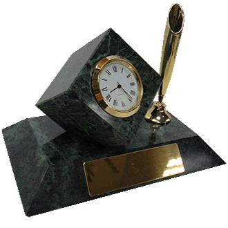 There’s gold clock in square marble. You can see lots of streaks and simplest factor on this item. We also make one of the corners and stand stable on the stylish marble. It’s also have golden classic pen holder and black ball pen on it. The size for golden plate is 2cm x 7cm can be print the logo you need.