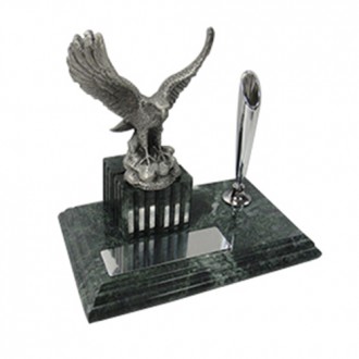 The green marble is unique color in the world. There are fearless eagle spread winds and stand on the marble pillar. It’s looks brave and honorable. The size for the chrome plate is 2cm x 7cm. It’s can be print the logo you need.