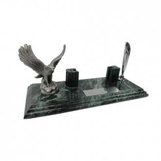 The green marble is unique color in the world. There are eagle spread it wind and marble pillar business card holder. It’s also have classic chrome pen holder and black ball pen. The size for the chrome plate is 2cm x 7cm. It’s can be print the logo you need.