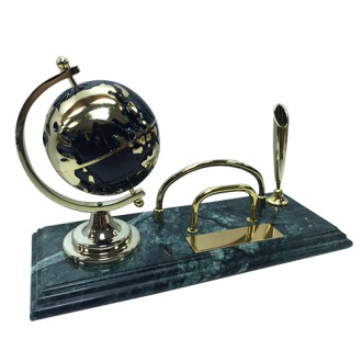 The green marble is unique color in the world. There are luxury metal globe.The bottom color is shiny black, the map is shiny golden. It's include name card holder golden.It's also have gold plate on it. The size for the plate is 2cm x 7cm.