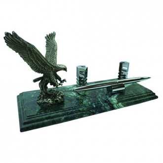 Marble desk set with eagle pewter amd name card holder chrome.It's include metal pen holder and metal pen chrome.