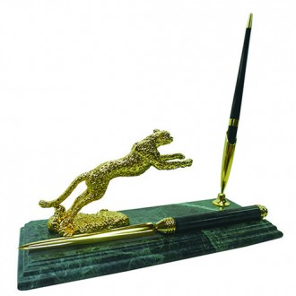 Marble desk set with leopard pewter golden and marble letter opener. It's include classic pen holder and black ball pen.