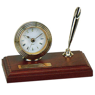 There are golden clock with classic golden pen holder and black ball pen. The golden plate size is 2cm x 7cm.