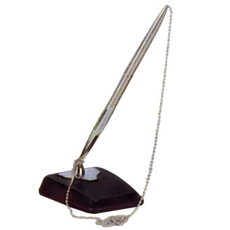 Plastic pen stand black with 60cm chrome chain and metal pen.