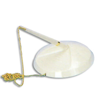 Plastic pen stand white with 60cm golden chain and ball pen.