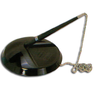 Plastic pen stand black with 60cm chrome chain and ball pen.
