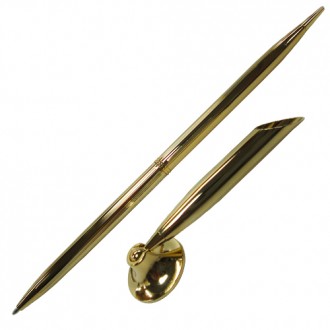 PEN HOLDER: Brass pen holder with 22mm base and electroplate gold.