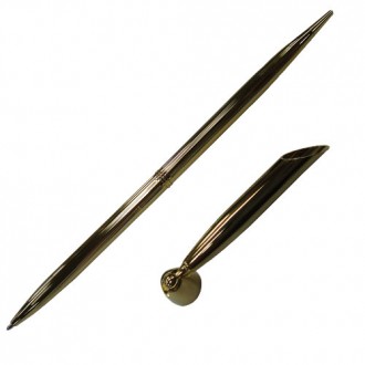 PEN: Brass ballpoints pen with gold ring and electroplate gold.