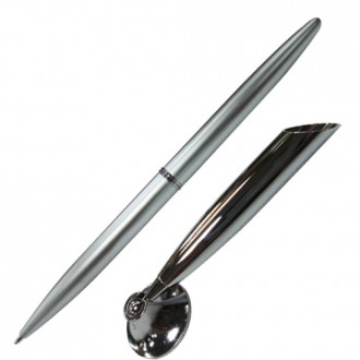 PEN: Brass ballpoints pen with chrome ring and electroplate foggy silver.